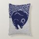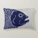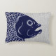 Gefällt Ihnen das Aussehen eines kühlen japanischen Kunststils? Dieses Kissen ist gleich hoch! Es ist der Hintergrund der grauen Herringbones an der Küste mit einer marineblau-blauen Fischkopfillustrierung, die sicher jedem Aufmerksamkeit schenken wird. Es ist künstlerisch und kühn, wenn man traditionelle Fischmalereien in japanischer Kunst kennt, aber mit einer modernen Drehung.