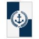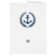 Nautisches Design mit Anker- und Lorbeerkraendekoration über blau-weißem geometrischem Hintergrund