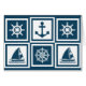 Nautisches Design mit Segelrad, Segelboot, Kompass und Ankerdekoration in weiß-blau gestreiften Quadraten