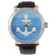 Uhr, Vintage Männeruhr mit schwarzem Lederarmband