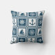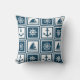 Nautisches Design mit Segelrad, Segelboot, Kompass und Ankerdekoration in weiß-blau gestreiften Quadraten