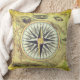 Kopfkissen mit Vintager Karte und Kompass auf der Vorderseite und Texturbild des Bruch auf der Rückseite.