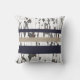 Navy / Beige / Weiße Streifen über Peelingholz Kissen
