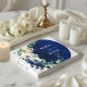The front showcases a luxurious floral composition in deep navy and eucalyptus tones, while the back mirrors the same background for a cohesive, high-end look that feels polished and thoughtfully designed.
