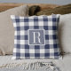 Modernes, modernes, rustikales Kissen mit personalisiertem Monogramm auf marineblau Karo Muster.