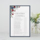 Modernes, elegantes Brautparty-Spiel "Guess Who" mit einem Blumenstrauß in marineblau und bordeauxfarbenen Blume, das von Marineblau umgeben ist. Personalisieren Sie Ihre Fragen in weichem Offschwarz, betont durch schöne moderne handgeschriebene Kalligraphie. Teil einer koordinierten Suite. Suite hier ansehen: https://www.zazzle.com/collections/elegant_navy_blue_burgundy_botanical_bridal_shower-119592964187643986 Kontakt-Designer für passende Produkte. Copyright Anastasia Surridge für Elegant Invites, alle Rechte vorbehalten.