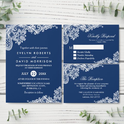 Invitation Suite: Elegant Navy Blue White LaceDesignt von Scott C.