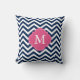 Navy Blue Fuschia Zigzag Muster Monogram Kissen
