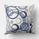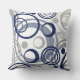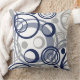 Eine Vielzahl von blauen und grauen Kreisen bilden ein interessantes und attraktives Design auf diesem Kissen. Die Kreisbilder werden auf einem weißen Hintergrund platziert. Das Muster wird auf der Rückseite des Kissens wiederholt. *Dank Milachi Design auf Etsy.com für das Kreismuster, das in diesem Design verwendet wird.