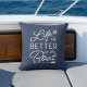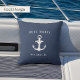 Ein perfekter Zusatz zu Ihrer Bootsdekoration, unser Küstenstollen Kissen mit klassisch marineblau Hintergrund mit "Leben ist besser auf dem Boot" in weißer Schrift, betont mit Rad- und Ohrbildern des Schiffes. Personalisieren Sie die Rückseite mit Ihrem Bootsnamen und Schiffsregister mit einem nautischen Anker in der Mitte.