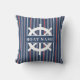 Navy Blue Monogram Boat Name Rope Stripes Nautic Kissen