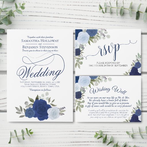 Rustic Blue Roses Elegant Watercolor Wedding SuiteDesignt von Cat Ritchie