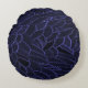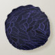 Dieses runde Kissen hat eine naturgetreu inspirierte Eleganz mit einer modernen abstrakten Drehung. Die Farben sind tiefblau, indisch und dezent mit violetten Akzenten. Es zeichnet sich durch ein kompliziertes überlappendes Blatt Muster aus, das mit leuchtenden, threadähnlichen Details umrissen wird, wodurch ein strukturiertes und dynamisches Aussehen entsteht. Die Bio Blattformen in Verbindung mit den reichen Mitternachtstönen verleihen ihm eine raffinierte und beruhigende Ästhetik. Es ist ideal für Hausbesitzer, Innenarchitekten oder alle, die eine Touch von raffinierter, naturlich inspirierter Eleganz in ihrem Wohnzimmer, Schlafzimmer oder Bürobereich hinzufügen möchten. Ideal für moderne, böhmische und zeitgenössische Innenräume.