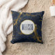 Personalisiertes Kissen mit stilvollem und elegantem Hintergrund aus Marineblau und Goldmarmor. Oben platziert ist ein Kreis mit einem Imitat, der eine goldene Folie mit dem personalisierten Text enthält.