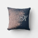 Navy Blue und Imitate Rose Gold Glitzer Monogramm Kissen