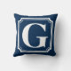 Navy Blue Vintag Border Monogram Pillow Kissen