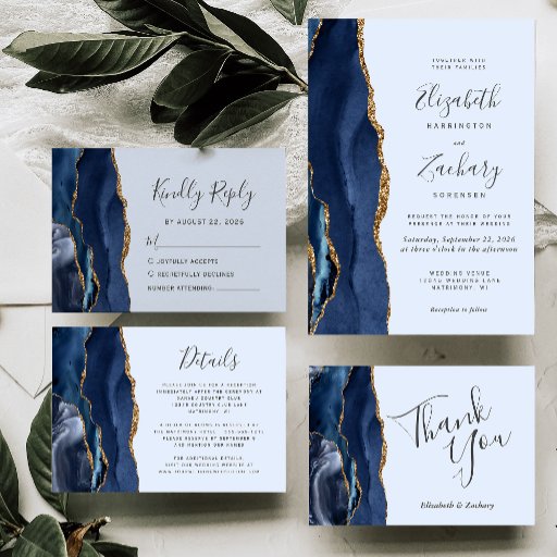 Navy Gold Agate Pale Blue Wedding SuiteDesignt von Akhates Designs