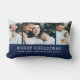 Navy Holiday Foto Throw Kissen. Lassen Sie sich von unserem schicken personalisierten Foto-Urlaubskissen verzaubern. Dieser stilvolle Sake mit einem Vintagen Schriftart für Schreibmaschinen und Platz für 3 Fotos aus der Familie ist eine perfekte Mischung aus Nostalgie und Stil. Weißer Text auf grünem Hintergrund verstärkt seine visuelle Anziehungskraft. Personalisieren und machen Sie Ihre Erinnerungen zeitlos!