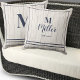 Dieses Navy Blue Stripes Beach House Kissen mit Familienname und Monogramm ist eine perfekte Mischung aus Küstenstaub und Chic-Stil, die Ihr Dekor im Beach House noch verstärken wird. Das Kissen ist mit natürlichen rustikalen Holz gestaltet und weist zeitlose blaue Streifen auf, die den beruhigenden Rhythmus der Wellen widerspiegeln, die sanft über das Ufer ragen. Die Kombination dieser klassischen Streifen mit dem warmen, strukturierten Holzhintergrund schafft ein stilvolles und einladendes Ambiente und macht es zu einer idealen Ergänzung zu Ihrem am Strand inspirierten Wohnbereich. Auch perfekt als Beach Housewarming Geschenk.