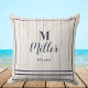 Navy Monogram Rustic Wood Family Beach House Kissen