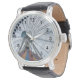 Uhr, Vintage Männeruhr mit schwarzem Lederarmband