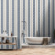 Navy Slate Ticking Stripe Linen Texture Tapete