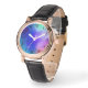 Uhr, Kinderuhr aus Edelstahluhr mit lila Lederarmband
