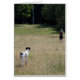 Ein Welpe beobachtet und wartet, wie sein Meister ihn auf dieser Karte verlasst.