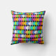 Dieses Kissen hat ein geometrisches Design von Neondiamanten, die sich auf einem schwarzen Feld überlagern.