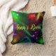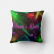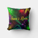 Neon, buntes abstraktes Kissen mit Sternen, Spiralen und Wimpern in Rot, Grün, Rosa, Gelb und Türkis. Personalisieren Sie mit Ihrem Namen, fügen Sie ein Datum, oder glücklich Geburtstag. KEIN TATSÄCHLICHES GLOW
