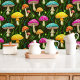 Mit dieser lebendigen Pilztapete können Sie Ihren Platz in aller Ruhe stärken. Neonpilze in Rosa-, Gelb- und Blautönen vor einem Hintergrund üppiger grüner Farne schaffen eine fröhliche und skurrile Atmosphäre. Diese Tapete mit Schale und Knüppel lässt sich leicht auftragen und entfernen. Sie ist ideal, um den Schlafzimmern, Spielzimmern oder jedem Raum, der eine Touch Spaß benötigt, eine Touch von naturlich inspiriert Charme hinzuzufügen.