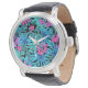Neon Pink und Blue Tropical Pflanze Muster beobach Armbanduhr