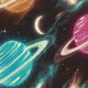 Lassen Sie sich von dieser aufschlussreichen, raumbezogenen Tapete in eine lebendige Galaxie entführen. Neonplaneten und halbmondfarbene Monde erhellen eine Sternenweite und schaffen eine faszinierende und futuristische Atmosphäre. Diese Tapete mit Schale und Stock ist leicht zu verwenden und zu entfernen, wodurch sie perfekt dazu geeignet ist, Schlafzimmern, Spielzimmern oder jedem Raum, der eine Touch von stellarem Stil benötigt, eine Touch kosmischer Wunder hinzuzufügen.