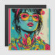 Neon Pop Diva Portrait - Bold & Vibranno Retro Art Magnetkarte