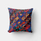 Ein lebendiges, buntes Kissen mit goldenen und roten, wirbelnden Gewölben.