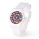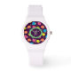 Stilvolle Rose in leuchtend neonenrosa, blau, gelb und korallenfarben mit neongrünen Blätter sind über einen lila Hintergrund gestreut, um ein lustiges Blumenmuster zu schaffen. Diese Uhr ist in verschiedenen Stilen, Farben und Größen erhältlich, einschließlich Größen für Männer, Frauen und Kinder. Passen Sie das Monogramm auf dieser Uhr mit Ihrem ersten an, um es einzigartig zu Ihrem eigenen zu machen.