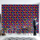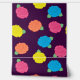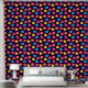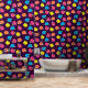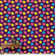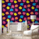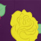 Stilvolle Rose in leuchtend neonenrosa, blau, gelb und korallenfarben mit neongrünen Blätter sind über einen lila Hintergrund gestreut, um ein lustiges Blumenmuster zu schaffen.