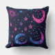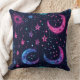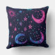 Ein lebendiges, sich wiederholendes Muster leuchtender Neonrosa und blauer Monde, Sterne und Sonnen vor einem dunklen marinösen Hintergrund; mit einer handgezeichnet, leicht strukturierten Sternenhimmel-Ästhetik, die leuchtende, halbtransparente Formen und funkelnde Details aufweist