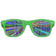 Helle, digitale Kunstwerke, die aus einem Fraktal entstanden sind und in eine Explosion von Farbenbogen nachgebildet sind, die an Neonlichter auf schwarzem Hintergrund erinnert.