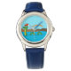 Kinderuhr aus Edelstahl mit blauem Lederarmband