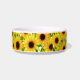 Ursprünglicher Kunstentwurf der netten gelben Sonnenblumen durch Künstler Carolyn McFann zwei des schnurrenden Katzen-Studios druckte auf einer QualitätsNahrung für Haustiereschüssel.