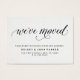 Diese Änderung der Adresskarten sind die perfekte Größe, um in Ihre Hochzeit dank Ihnen Karten oder jede Art von Korrespondenz stecken. Sie zeigen die Worte "wir haben bewegt" in der modernen schwarzen Typografie, auf einem weißen Aquarellpapier Look Hintergrund.