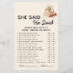 Bringen Sie Lächeln und süße Überraschungen zu Ihrem Brautparty mit diesem Er sagte, sie sagte - Neues Kapitel Buch Edition. Dieses Brautparty wurde speziell für literarische oder "New Chapter Begins" entwickelt und bietet lustige Fragen und spielerische Zitate, bei denen die Gäste erraten, ob Braut oder Bräutigam es gesagt hat. Mit seiner inspirierten, eleganten Grafik und seinem anpassbaren Text ist es ein perfekter Eisbrecher für buchenliebende Bräute und romantische Geschichtenerzähler. Ideal für Brautpartys, Verlobungsfeiern oder Abendessen in der Probe, fügt dieses Spiel Ihrer Feier eine nachdenkliche, leichte Touch hinzu.