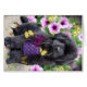 Niedlicher Neufundland-Welpe, der Behälter gelbe Schmetterlinge gegen Hintergrund der bunten wilden Blumen hält, machen diese eines netten Entwurfs das perfekte Geschenk für jeden möglichen Hundeliebhaber.