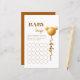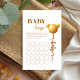 This design was inspired by a shiny gold balloon shaped like a tiny teddy, floating into a fun-filled celebration. The soft neutral palette and clean modern layout make this bingo card a stylish and playful activity that fits perfectly into an elegant baby shower.