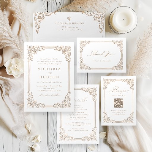 Neutral Vintage Frame Elegant Script WeddingDesignt von Fran Z