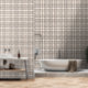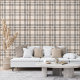Neutrale Elfenbein Beige Karierte Quadrate Streife Tapete