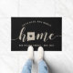 Zeigen Sie einen Zuhause-Staatsstolz mit dieser benutzerdefinierten Türmatte mit "Zuhause" in einem kalligraphischen Schriftzeichen mit einer Silhouette des Staat von New Mexico, stehend für den Buchstaben "O". Eine Herzillustrierung in der Staat-Karte vervollständigt das Design; Sie können die Herzposition in Ihrer Zuhause-Stadt ändern, indem Sie das Designwerkzeug öffnen und die Herzform an Ihren bevorzugten Ort ziehen. Personalisieren Sie mit Ihrer Zuhause Stadt, Familienname und Jahr etabliert, um eine perfekte Touch für Ihre Haustür zu schaffen, oder ein unvergessliches Hauswärmeschenk.