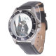 Uhr, Vintage Männeruhr mit schwarzem Lederarmband