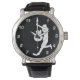 Uhr, Vintage Männeruhr mit schwarzem Lederarmband